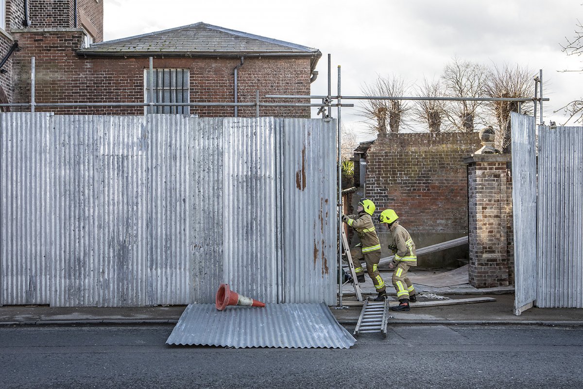 called 999 and fortunately the fire brigade came immediately and shut the road off, making safe before fred the scaffolder could come and make good.