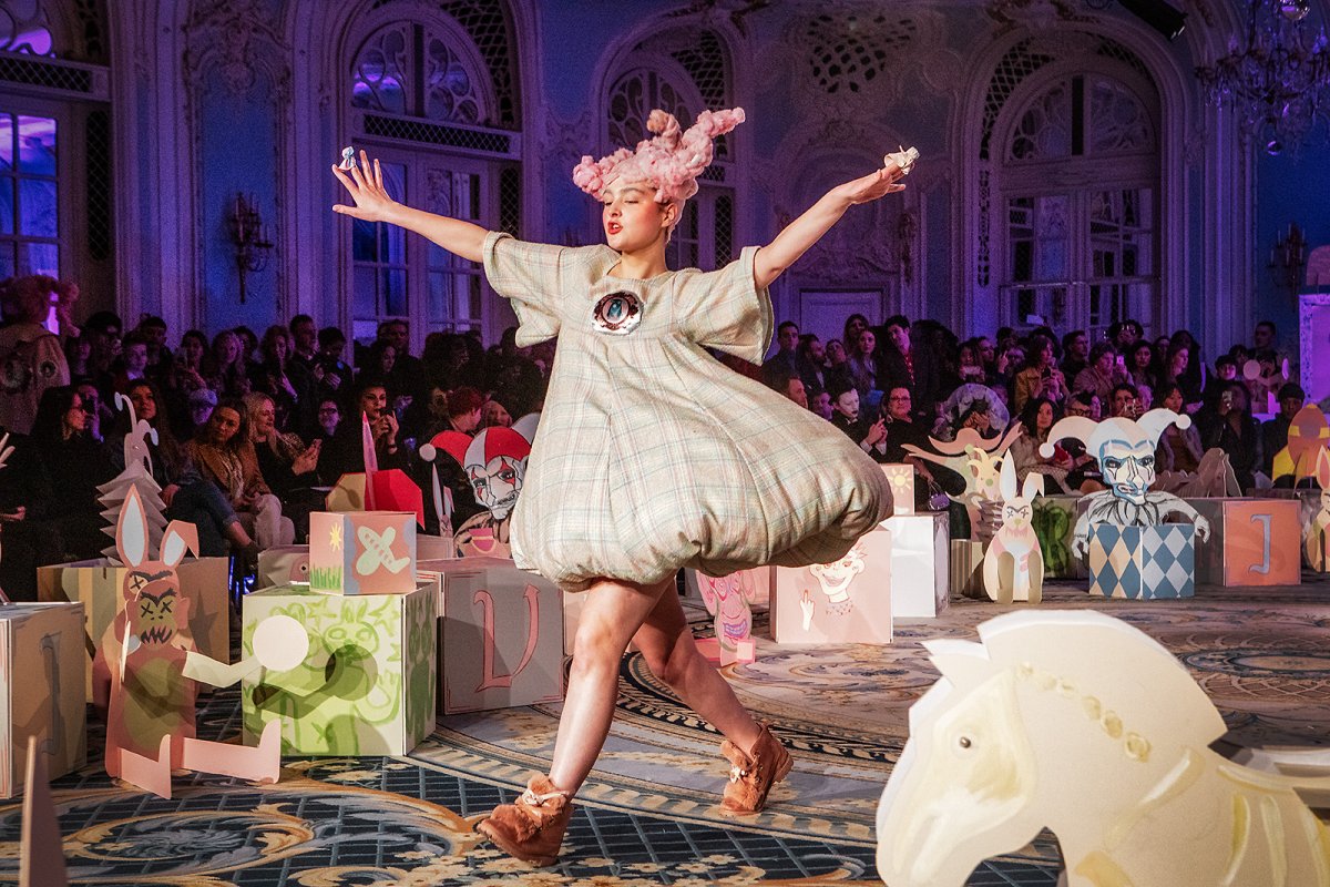 the show started almost frivolous and upbeat: all pastel pinks and baby blues...